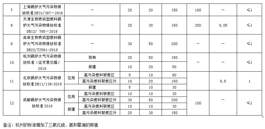 國(guó)家及地方生物質(zhì)鍋爐大氣污染物排放限值匯總與比較