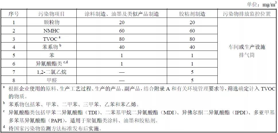 表3.涂料、油墨及膠粘劑工業(yè)大氣污染物特別排放限值