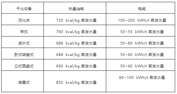 2)按照干化熱源的成本,從低到高依次如下:①煙氣;②燃煤;③蒸汽;④燃油;⑤沼氣;⑥天然氣。一般來說間接加熱方式可以使用所有的能源,其利用的差別僅在溫度、壓力和效率。直接加熱方式,則因能源種類不同,受到一定限制。其中燃煤爐、焚燒爐的煙氣量大,又存在腐蝕性污染物,較難使用。