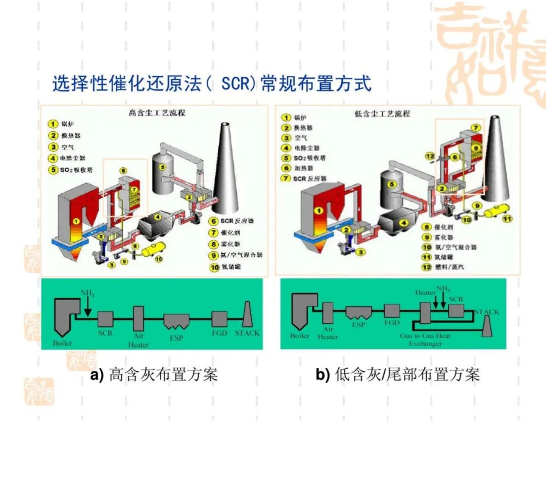 a) 高塵SCR系統(tǒng)--首選 ;b)低塵SCR系統(tǒng)