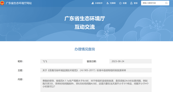 惡臭廢氣處理丨惡臭污染連續(xù)有組織排放源的采樣頻次,省廳答復(fù)