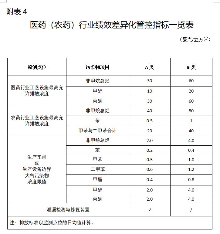 醫(yī)藥(農(nóng)藥)行業(yè)的差異化指標(biāo)主要分為排放水平、管理水平、裝備水平等方面。