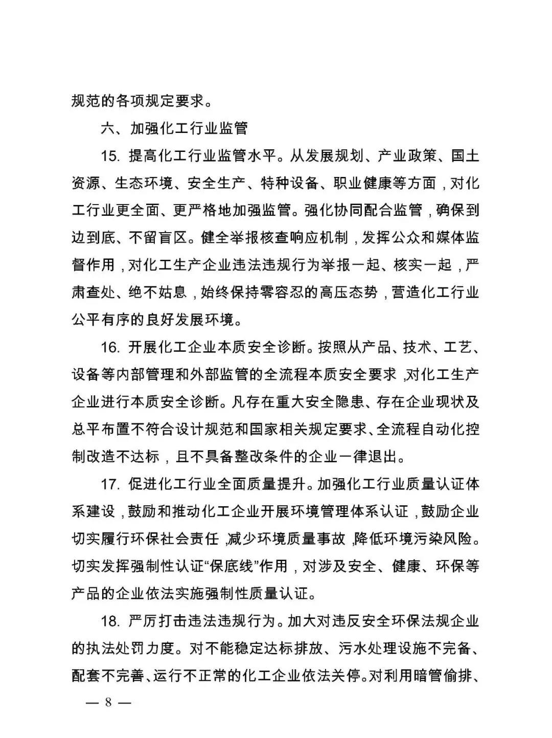 2、所有安全、環(huán)保不達標的化工企業(yè)立即停產(chǎn)、限期整改、關(guān)閉,關(guān)閉退出D類企業(yè)。