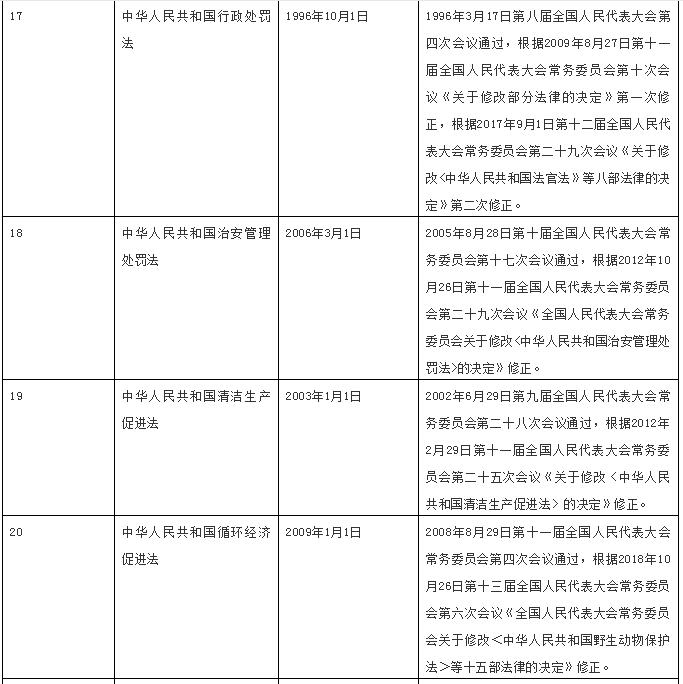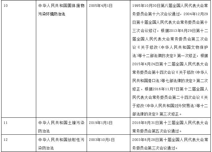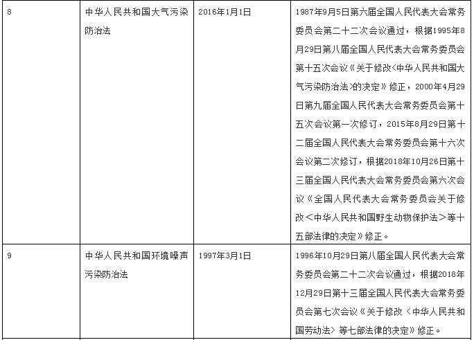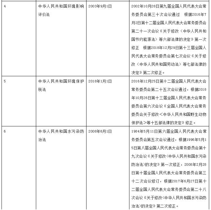 截至2019年5月27日2019年生態(tài)環(huán)境法律名錄: