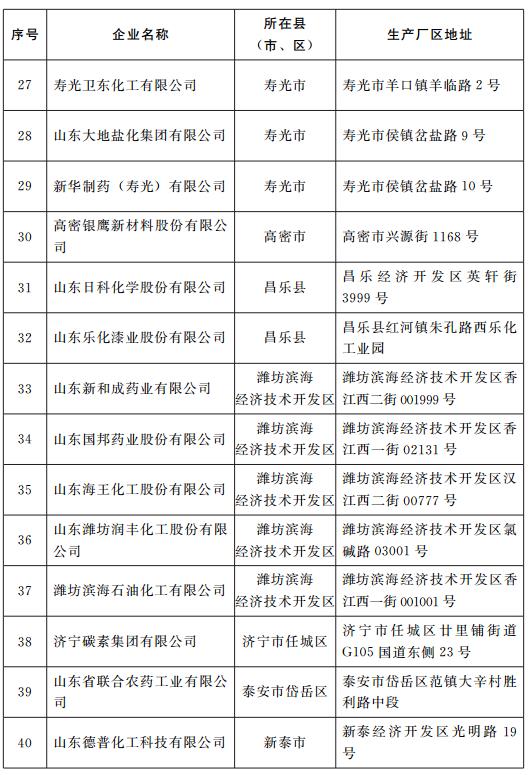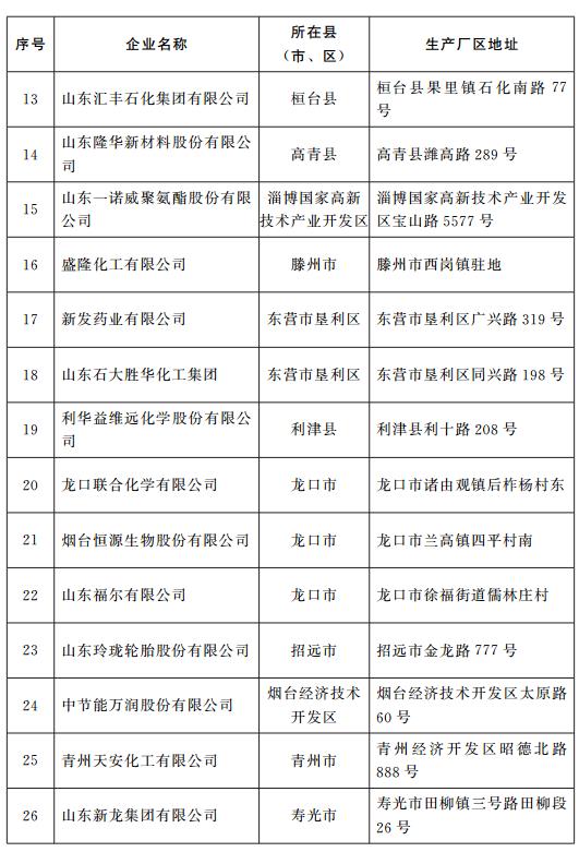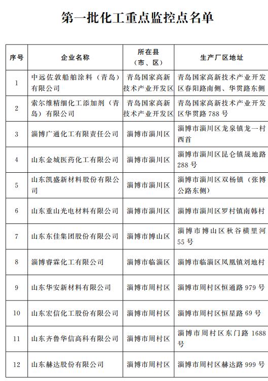 根據(jù)《山東省人民政府辦公廳關(guān)于印發(fā)山東省化工重點監(jiān)控點認定管理辦法的通知》(魯政辦字〔2018〕9號)規(guī)定,經(jīng)各市政府申報、第三方專業(yè)機構(gòu)評審和省政府有關(guān)部門審核,省政府確定了第一批化工重點監(jiān)控點名單,現(xiàn)予公布。省政府公布的重點監(jiān)控點今后新建、擴建化工項目,原則上只能在公布地址的生產(chǎn)廠區(qū)進行,其他生產(chǎn)廠區(qū)不得實施新建、擴建項目。