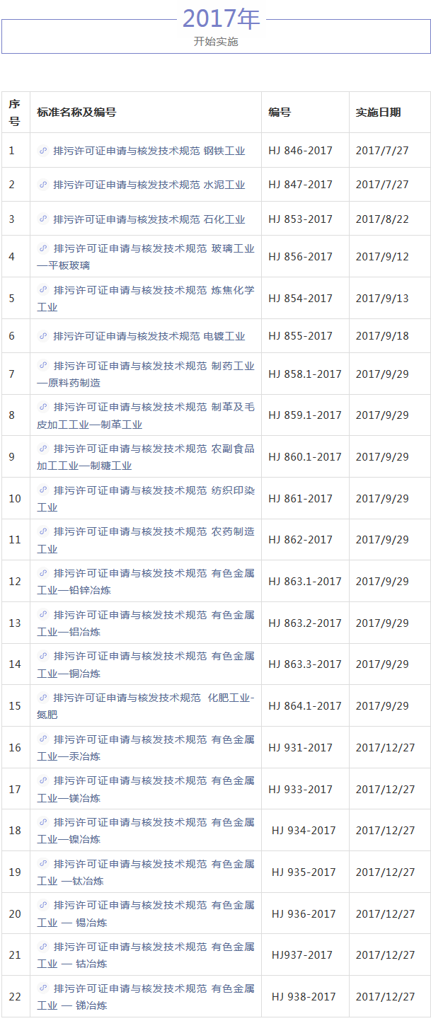 各行業(yè)排污許可證申請(qǐng)與核發(fā)技術(shù)規(guī)范匯總