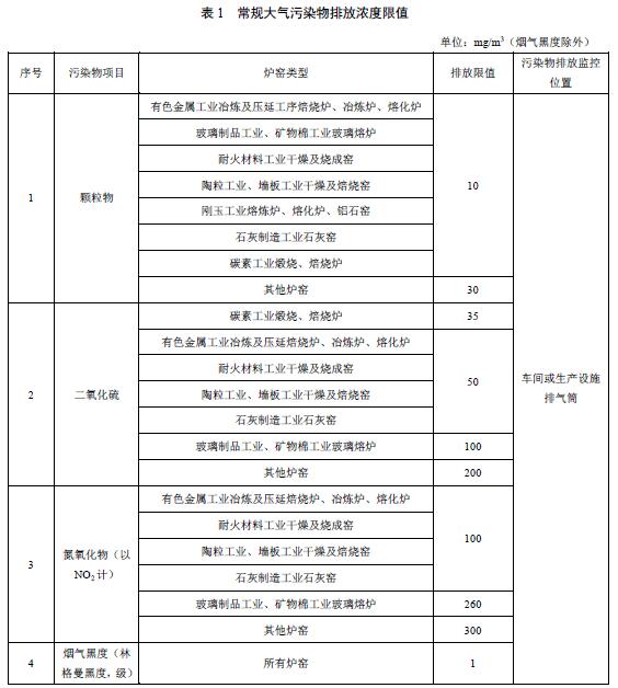 國(guó)家層面工業(yè)爐窯大氣污染物排放標(biāo)準(zhǔn)