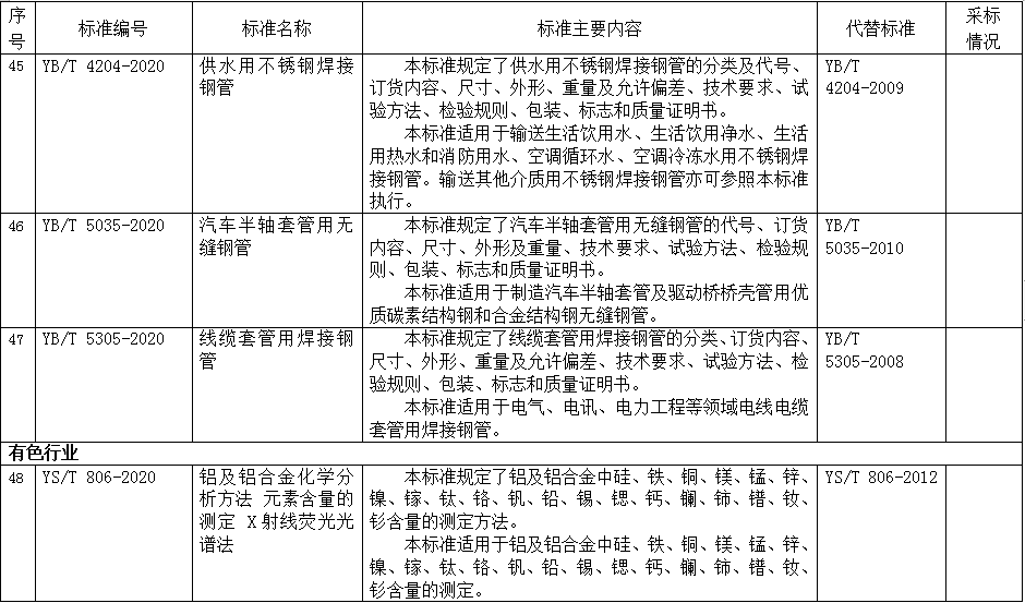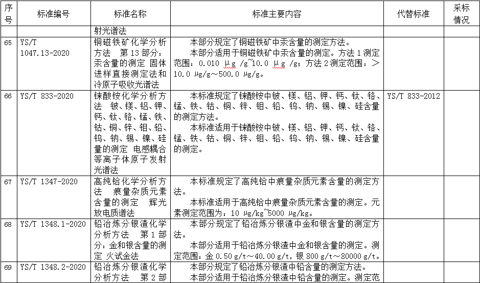 據(jù)行業(yè)標(biāo)準(zhǔn)制修訂計(jì)劃,相關(guān)標(biāo)準(zhǔn)化技術(shù)組織已完成《防偽磁粉》等35項(xiàng)化工行業(yè)標(biāo)準(zhǔn)、《重載鐵路轍叉用鋼》等12項(xiàng)冶金行業(yè)標(biāo)準(zhǔn)、《鋁及鋁合金化學(xué)分析方法 元素含量的測(cè)定 X射線熒光光譜法》等26項(xiàng)有色行業(yè)標(biāo)準(zhǔn)、《真空玻璃》等7項(xiàng)建材行業(yè)標(biāo)準(zhǔn)的制修訂工作,《鋁合金6061鑄態(tài)光譜單點(diǎn)標(biāo)準(zhǔn)樣品》等2項(xiàng)有色行業(yè)標(biāo)準(zhǔn)樣品的研制工作。在以上標(biāo)準(zhǔn)及標(biāo)準(zhǔn)樣品批準(zhǔn)發(fā)布之前,為進(jìn)一步聽取社會(huì)各界意見,現(xiàn)予以公示,截止日期2020年1月3日。