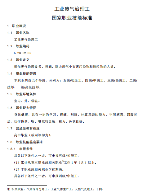 近日,人力資源社會(huì)保障部頒布了工業(yè)廢氣治理工等46個(gè)新版國(guó)家職業(yè)技能標(biāo)準(zhǔn)。此次頒布標(biāo)準(zhǔn)的46個(gè)職業(yè),均屬于《中華人民共和國(guó)職業(yè)分類大典(2015年版)》第六大類“生產(chǎn)制造及有關(guān)人員”,主要集中在紡織、輕工、印刷、冶金、機(jī)械、電力等生產(chǎn)制造領(lǐng)域。