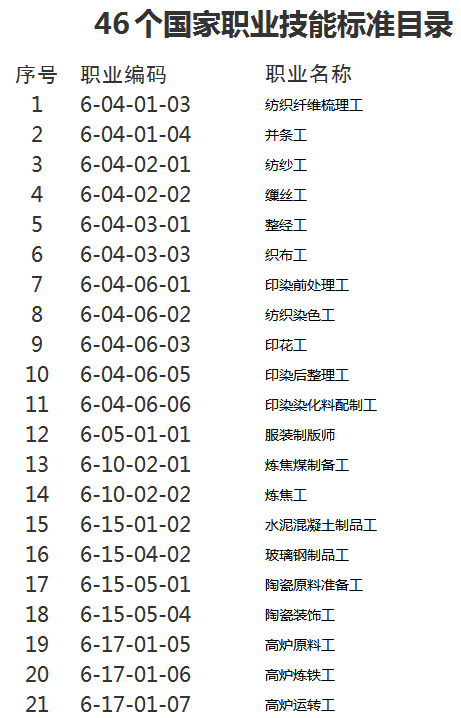 人力資源社會(huì)保障部辦公廳關(guān)于頒布紡織纖維梳理工等46個(gè)國(guó)家職業(yè)技能標(biāo)準(zhǔn)的通知