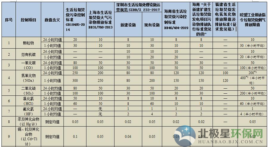 歐盟及我國(guó)垃圾焚燒相關(guān)標(biāo)準(zhǔn)限值匯總比較