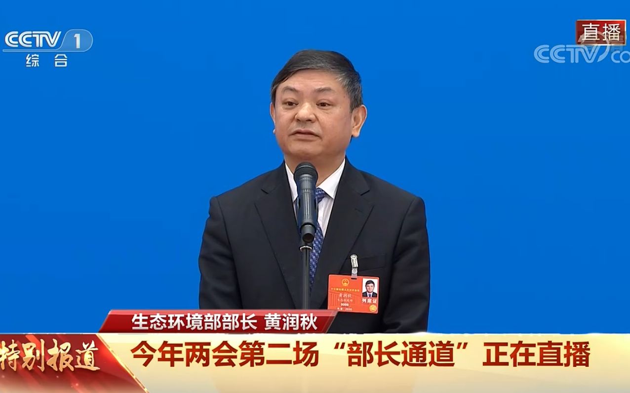 生態(tài)環(huán)境部部長黃潤秋亮相“部長通道”。