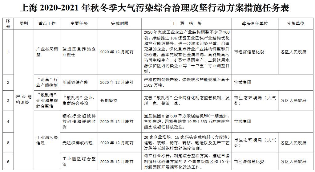 附件:上海市2020-2021年秋冬季大氣污染綜合治理攻堅行動任務(wù)清單