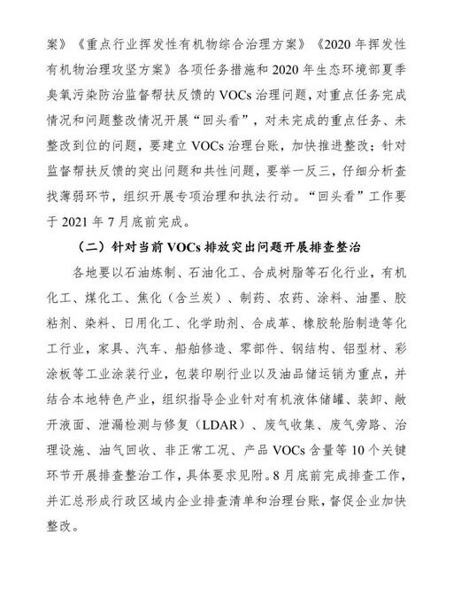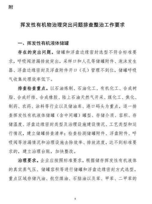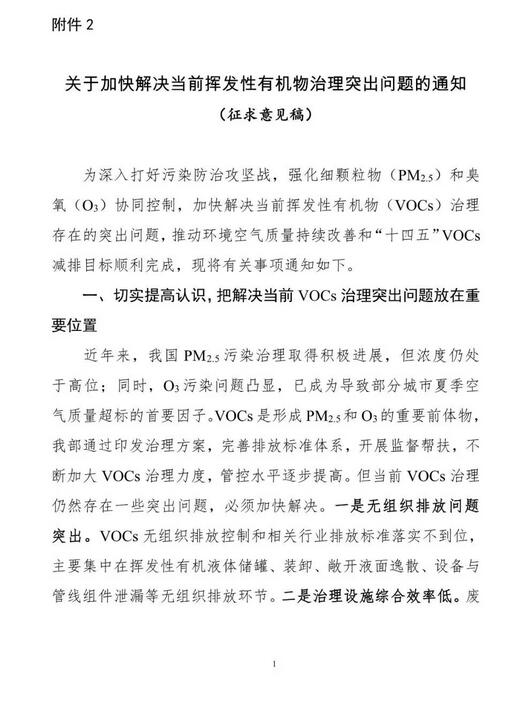環(huán)境部:關(guān)于加快解決當(dāng)前揮發(fā)性有機(jī)物治理突出問題的通知(征求意見稿)