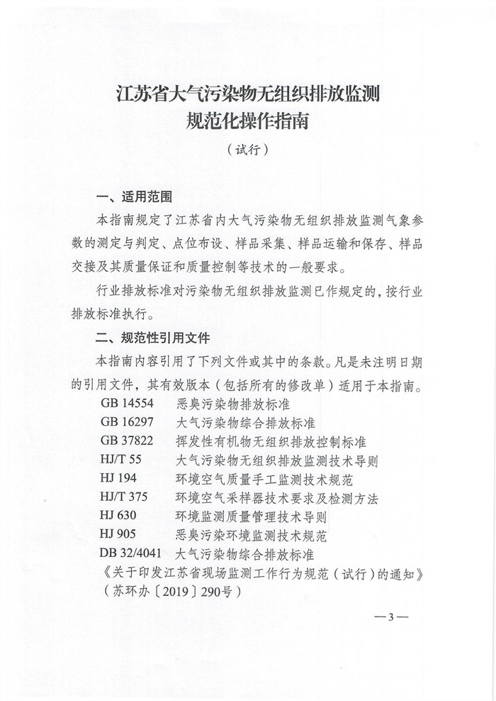 江蘇省大氣污染物無(wú)組織排放監(jiān)測(cè)規(guī)范化操作指南(試行)