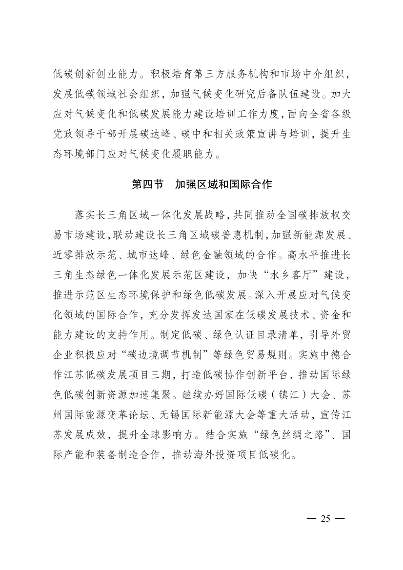 日前,江蘇發(fā)布《江蘇省“十四五”應(yīng)對氣候變化規(guī)劃》?!兑?guī)劃》提出, 到 2025 年,單位地區(qū)生產(chǎn)總值二氧化碳排放下降完成國家下達(dá)目標(biāo),碳達(dá)峰具備堅(jiān)實(shí)基礎(chǔ),應(yīng)對氣候變化與生態(tài)環(huán)境保護(hù)統(tǒng)籌融合的格局總體形成,基本建成低碳新經(jīng)濟(jì)發(fā)展引領(lǐng)區(qū)、協(xié)同融合管控示范區(qū)、綠色低碳生活樣板區(qū)。