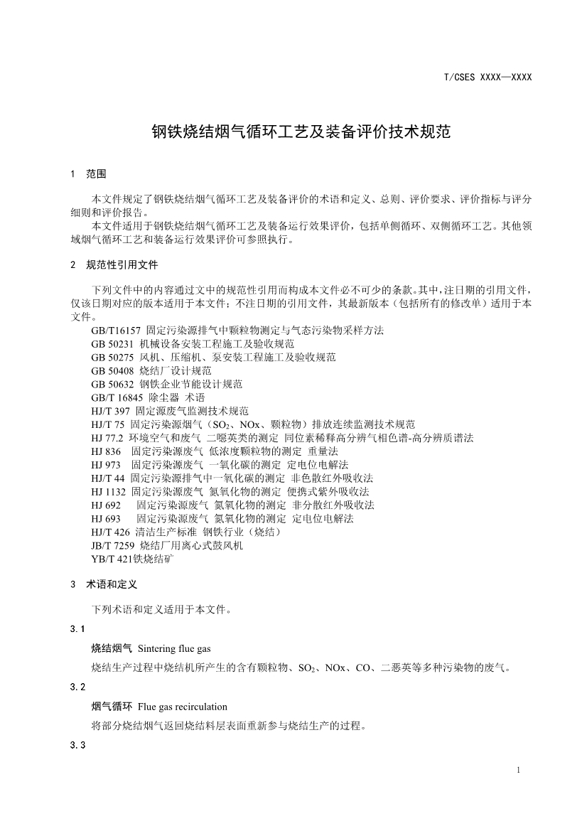 團(tuán)標(biāo):《鋼鐵燒結(jié)煙氣循環(huán)工藝及裝備評(píng)價(jià)技術(shù)規(guī)范(征求意見稿)》