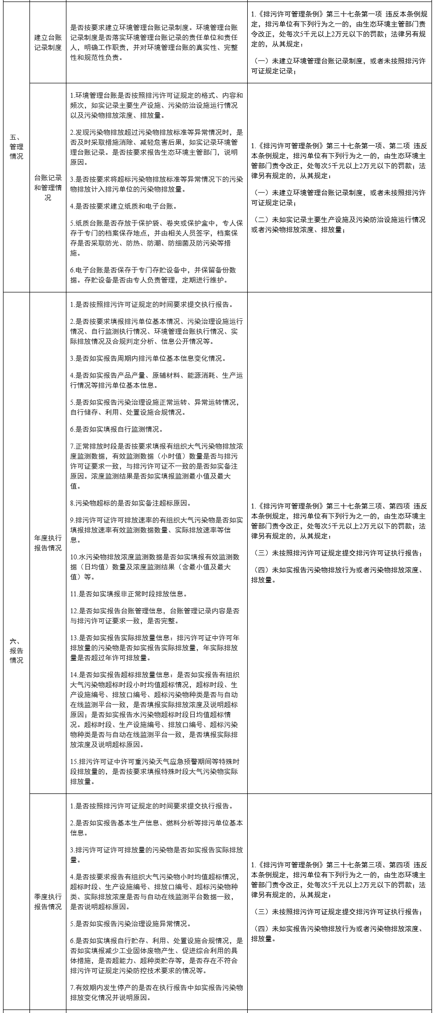 排污許可執(zhí)法檢查清單