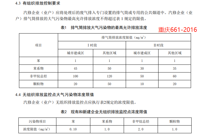 二、國(guó)內(nèi)涂裝工序/排氣筒排放限值匯總