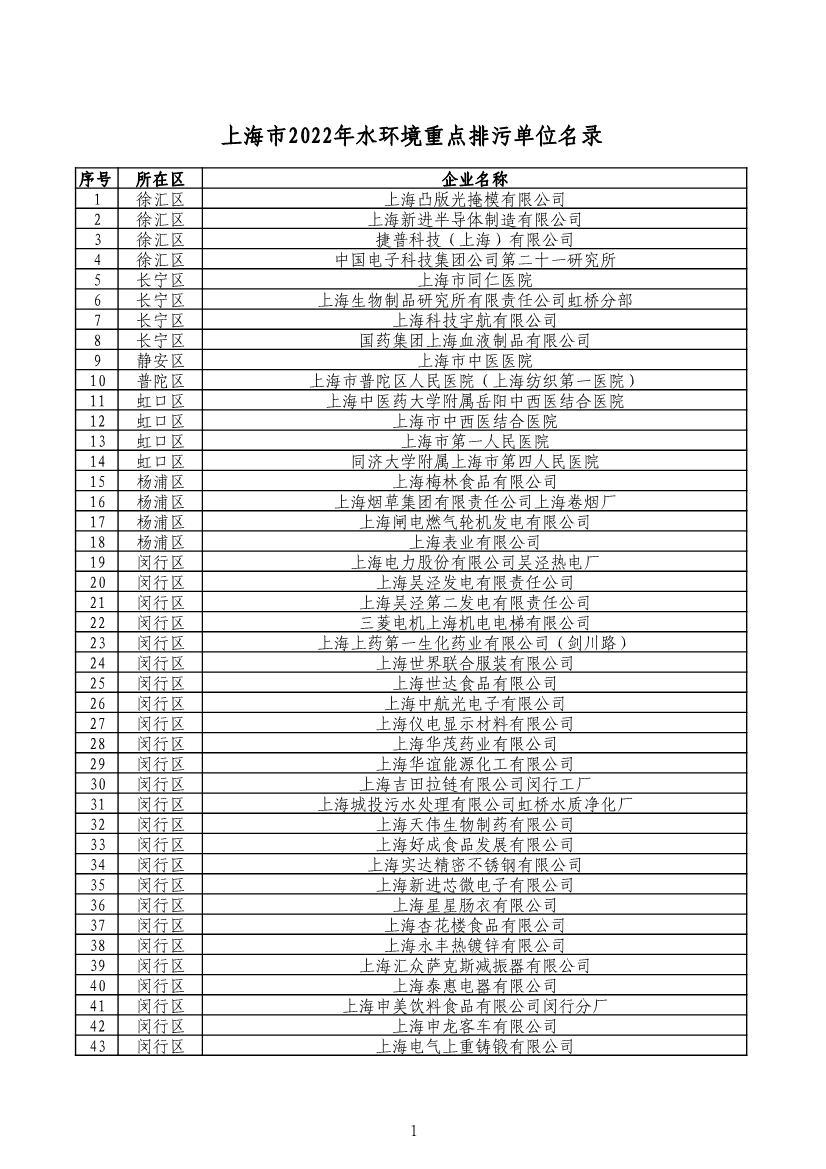 上海市生態(tài)環(huán)境局關(guān)于印發(fā)《上海市2022年重點排污單位名錄》的通知