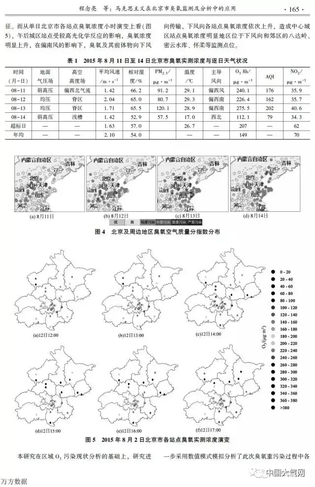 論文摘要寫道:“本文將馬克思主義認(rèn)識(shí)論與北京市大氣環(huán)境臭氧濃度監(jiān)測與評(píng)價(jià)有機(jī)結(jié)合起來,利用北京及周邊地區(qū)O?監(jiān)測數(shù)據(jù),結(jié)合數(shù)值模型,篩選案例綜合探討了2015年8月11至14日一次臭氧重污染過程中O?濃度的分布特征及污染成因。利用馬克思主義分析監(jiān)測中遇到的矛盾及評(píng)價(jià)經(jīng)驗(yàn),并指導(dǎo)臭氧治理實(shí)踐,深刻揭示了馬克思主義對(duì)環(huán)境質(zhì)量改善的指導(dǎo)意義,研究結(jié)果最終為保障公眾健康服務(wù)。”