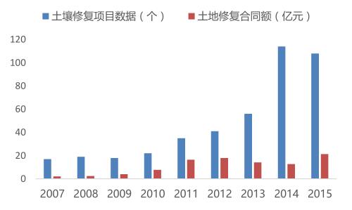 07--15年土壤修復(fù)項目數(shù)量及合同額