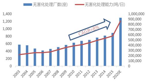 預(yù)計到2020年環(huán)衛(wèi)無害化處理能力達(dá)到86.26萬噸/日,未來環(huán)衛(wèi)服務(wù)市場廣闊。