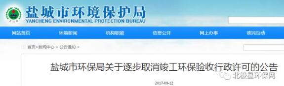 2017年10月1日起,我局將取消建設(shè)項目竣工環(huán)境保護驗收行政許可的所有相關(guān)工作事項。