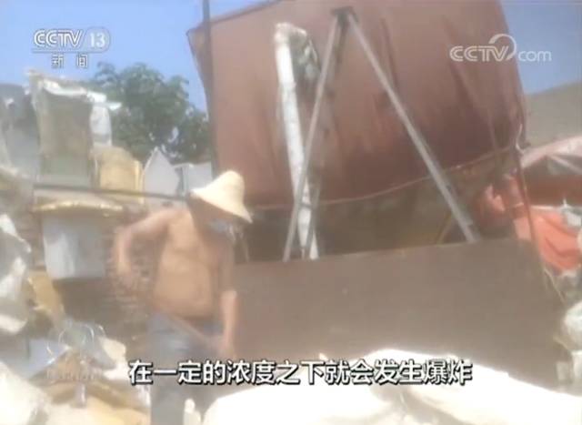 而像這樣不安全的拆解處理行為在這個“廢品回收貨場”中隨處可見。