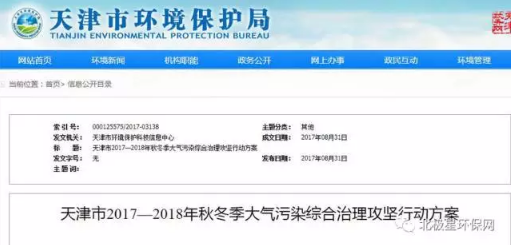 天津市2017—2018年秋冬季大氣污染綜合治理攻堅行動方案