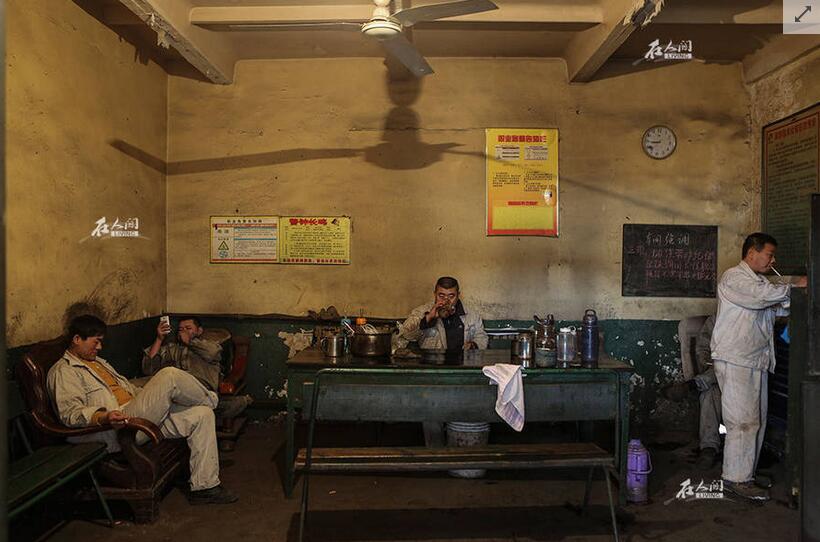 霧霾侵城,濟南市政府開始以“壯士斷腕”的決心整頓重工業(yè)產業(yè),球墨廠也赫然在列,并被勒令停產搬遷。圖為2016年12月11日,高爐車間的工人們在休息。隨著工廠關停時間的臨近,職工們對未來充滿不安。