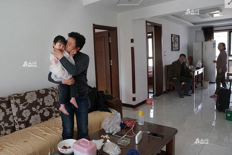 在蘭陵新廠工作兩周后,39歲的天車工宋巍終于等來兩天的休息時間,回到濟南家中的他,抱著分別多日的小女兒親吻。