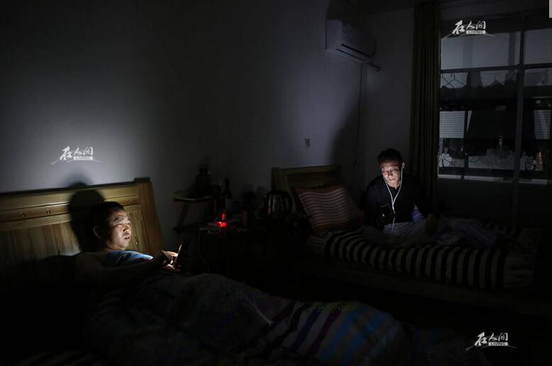 深夜,45歲汽輪機工馬培山和42歲的電工楊德中,在房間內用手機和家人聊天,身處異鄉(xiāng),生活單調,工人們想家是必然的。