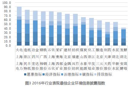 總體上,從行業(yè)分布的角度看,企業(yè)環(huán)境信息披露水平基本上與行業(yè)的污染特性相關,污染較密集的行業(yè)在披露上的水平較高,且從行業(yè)來看,環(huán)境信息披露平均水平的表現(xiàn)仍稱不上樂觀。而通過觀察各個行業(yè)的表現(xiàn)最佳企業(yè),我們發(fā)現(xiàn)它們的環(huán)境信息披露水平基本較高,因此如果具體到某一個企業(yè),我們必須結合其屬性來對特定企業(yè)的環(huán)境信息披露情況進行最終評估。