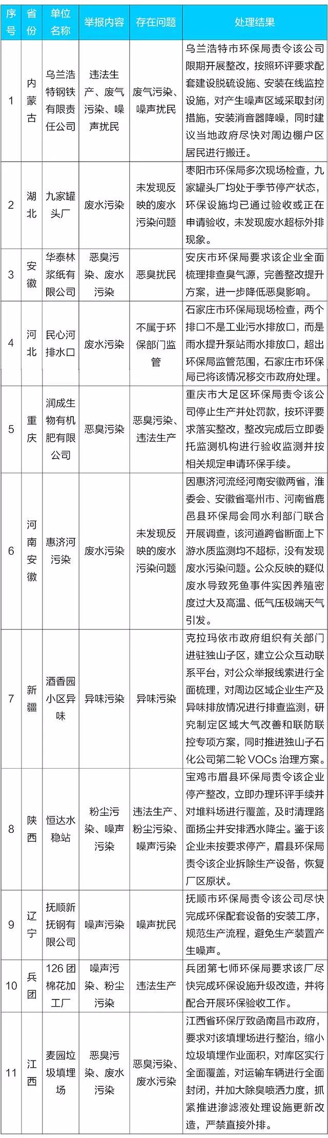 環(huán)境保護部通過全國環(huán)保舉報聯(lián)網(wǎng)平臺對各地舉報辦理情況進行監(jiān)督,對媒體、公眾集中關(guān)注或處理不到位的舉報高度重視,督促地方查清事實,依法實施處理處罰。8-10月共11件督辦情況如下: