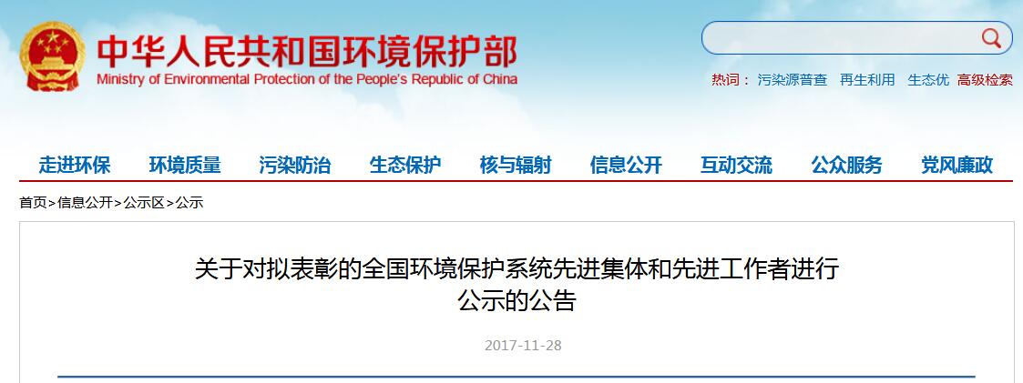 關(guān)于對擬表彰的全國環(huán)境保護(hù)系統(tǒng)先進(jìn)集體和先進(jìn)工作者進(jìn)行公示的公告