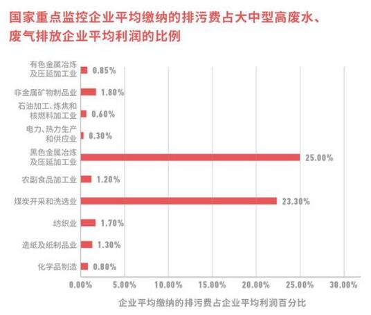 根據(jù)2015年排污費(fèi)征收情況來(lái)看,國(guó)控重點(diǎn)企業(yè)征收的排污費(fèi)約為88.8億元,征收企業(yè)數(shù)量為13974,每家企業(yè)平均繳納的排污費(fèi)約為64萬(wàn)元。將其與大中型高污染高排放工業(yè)企業(yè)的平均利潤(rùn)對(duì)比不難發(fā)現(xiàn),除黑色金屬冶煉及壓延加工業(yè)、煤炭開(kāi)采和洗選業(yè),排污費(fèi)對(duì)其它高污染行業(yè)的平均利潤(rùn)影響微乎其微。