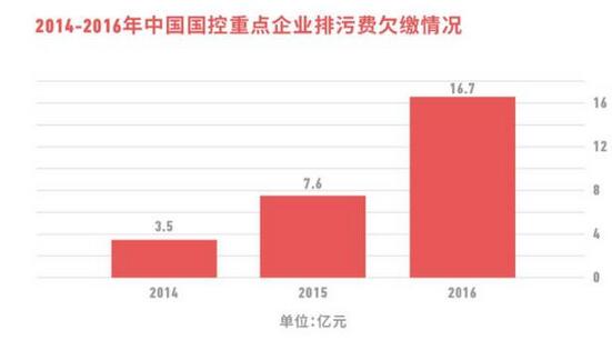 過(guò)去排污費(fèi)制度的最大問(wèn)題是費(fèi)用拖欠。2014至2016年間,中國(guó)國(guó)家重點(diǎn)監(jiān)控企業(yè)欠繳的排污費(fèi)為3.5億元、7.6億元、16.7億元,分別占各年應(yīng)繳征收排污費(fèi)的比例為4%、8%和17%。2016年,無(wú)一省份繳清排污費(fèi),拖欠最多的遼寧、江蘇兩省欠費(fèi)高達(dá)2.2億和1.7億元。