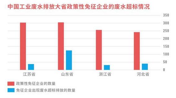這一措施旨在通過(guò)稅收免征和優(yōu)惠促進(jìn)企業(yè)主動(dòng)減少污染物排放。然而,過(guò)去實(shí)施過(guò)程中一直存在著審核不嚴(yán)等問(wèn)題,特別是對(duì)部分超標(biāo)排放的污水處理廠和企業(yè)給予了免征優(yōu)惠。中國(guó)工業(yè)廢水排放大省江蘇、山東、浙江、河北均存在這一問(wèn)題,最為嚴(yán)重的是山東,近43%獲得政策性免征企業(yè)工業(yè)廢水超標(biāo)排放。