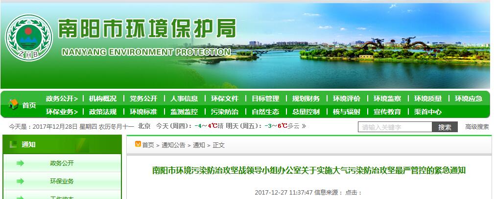 南陽市環(huán)境污染防治攻堅(jiān)戰(zhàn)領(lǐng)導(dǎo)小組辦公室關(guān)于實(shí)施大氣污染防治攻堅(jiān)最嚴(yán)管控的緊急通知