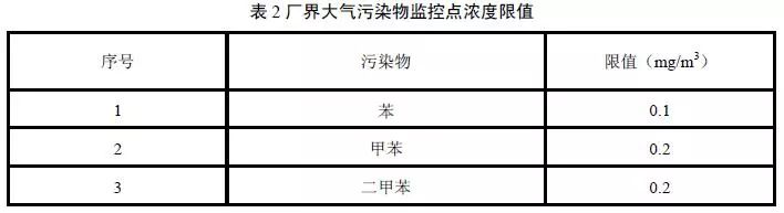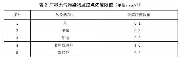 廠界大氣污染物監(jiān)控點污染物濃度限值應符合表2規(guī)定。