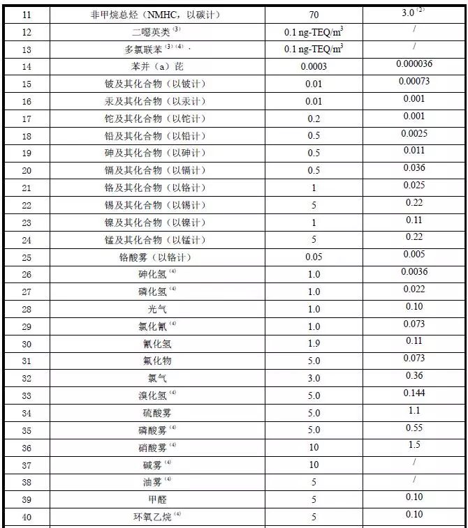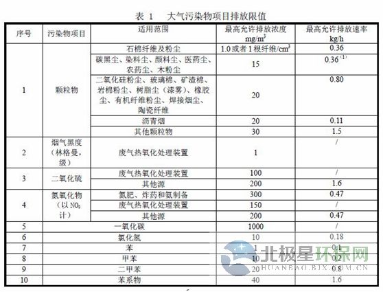 污染源大氣污染物排放濃度和排放速率限值應符合表1規(guī)定。