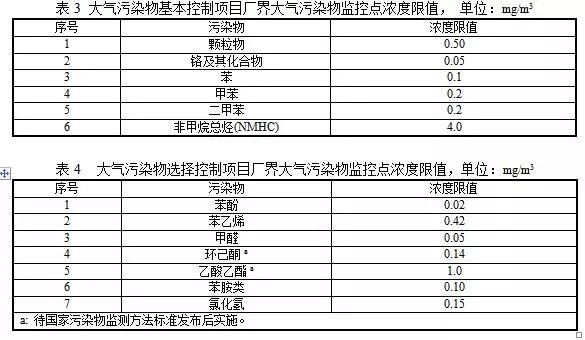 廠界大氣污染物監(jiān)控點濃度限值執(zhí)行表3和表4中廠界大氣污染物監(jiān)控點濃度限值。