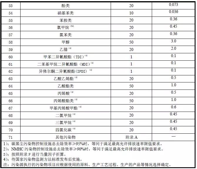 大氣污染物排放限值執(zhí)行表2規(guī)定。