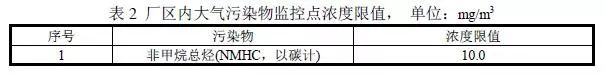 廠區(qū)內(nèi)大氣污染物監(jiān)控點濃度限值執(zhí)行表2的規(guī)定。