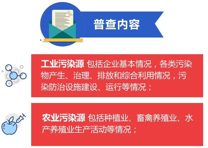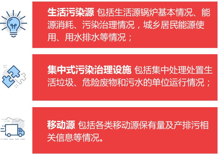 此次普查對(duì)象為全省行政區(qū)域內(nèi)有污染源的單位和個(gè)體經(jīng)營(yíng)戶(hù),范圍包括工業(yè)污染源、農(nóng)業(yè)污染源、生活污染源、集中式污染治理設(shè)施、移動(dòng)源及其他產(chǎn)生、排放污染物的設(shè)施。