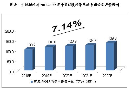 綜合以上因素,我們預計,2018年我國環(huán)境污染防治專用設備產(chǎn)量將達到103.2萬臺(套),未來五年(2018-2022)年均復合增長率約為7.14%,2022年將達到136.0萬臺(套)。