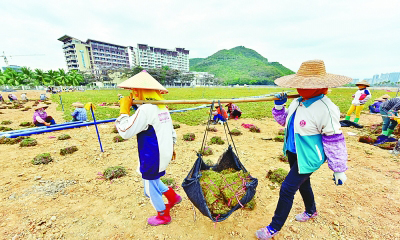 2018年1月19日,海南三亞小洲島項(xiàng)目工地正在進(jìn)行生態(tài)復(fù)綠。章軻攝/光明圖片