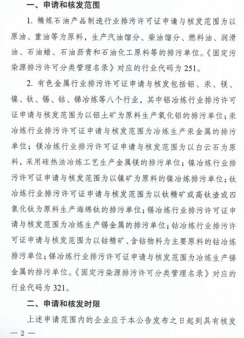 關(guān)于開(kāi)展精煉石油產(chǎn)品制造及有色金屬行業(yè)排污許可證申請(qǐng)與核發(fā)工作的通知
