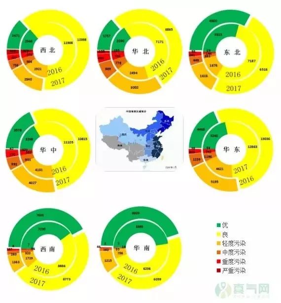 2017年,空氣質(zhì)量總體改善的同時(shí),局部時(shí)段有所反彈;京津冀、長(zhǎng)三角、珠三角等重點(diǎn)區(qū)域繼續(xù)改善,但個(gè)別地區(qū)污染仍然較重,河北、山西、天津、河南、山東5省市優(yōu)良天數(shù)比例仍不到60%,汾渭平原優(yōu)良天數(shù)比例逐年下降。